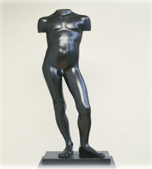 Twee torso’s raken elkaars onderlichamen net niet of net wel. De titel en sculptuur roepen in samenhang met elkaar een ongewone spanning op; tegelijkertijd lijkt het in zichzelf gekeerde beeld me als toeschouwer buiten te sluiten. Touch; een beeld dat me raakt maar me niet uitnodigt om de daad bij het woord te voegen.